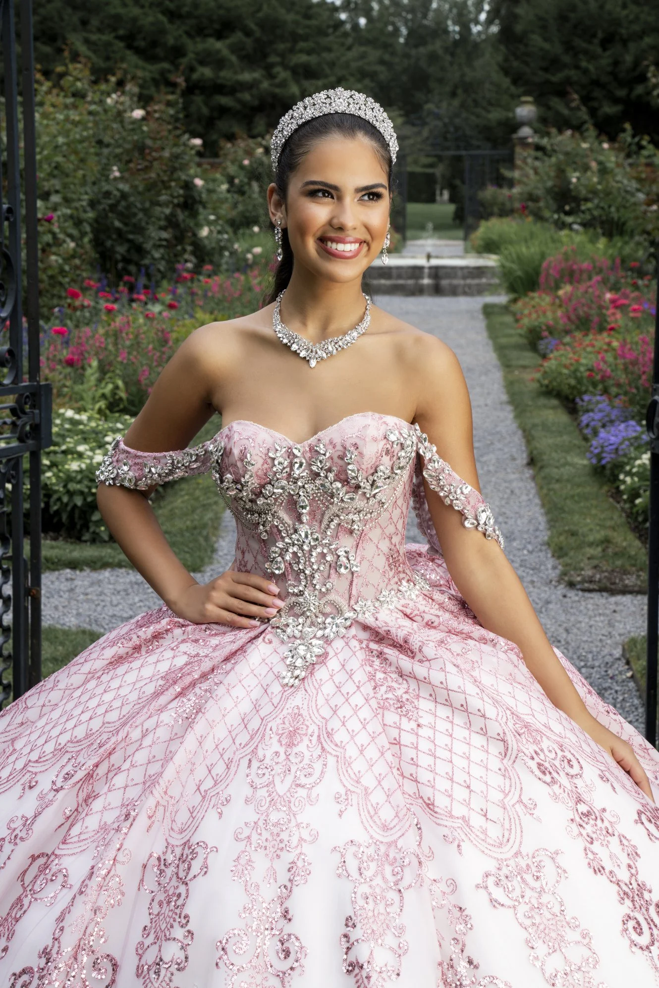 Step into a world of elegance and style at our store, where we offer an extensive collection of stunning Quince dresses. Whether you're looking for off-the-rack options or prefer to order in a specific size or color, we've got you covered. But that's not all! We also boast a diverse range of accessories to complete your look. From exquisite bouquets to dazzling necklaces and earrings, majestic crowns and tiaras to essential hoops, crinolines, and petticoats - we have it all. And the best part? They're all ready for you to take home today. Come, experience the magic of shopping with us!