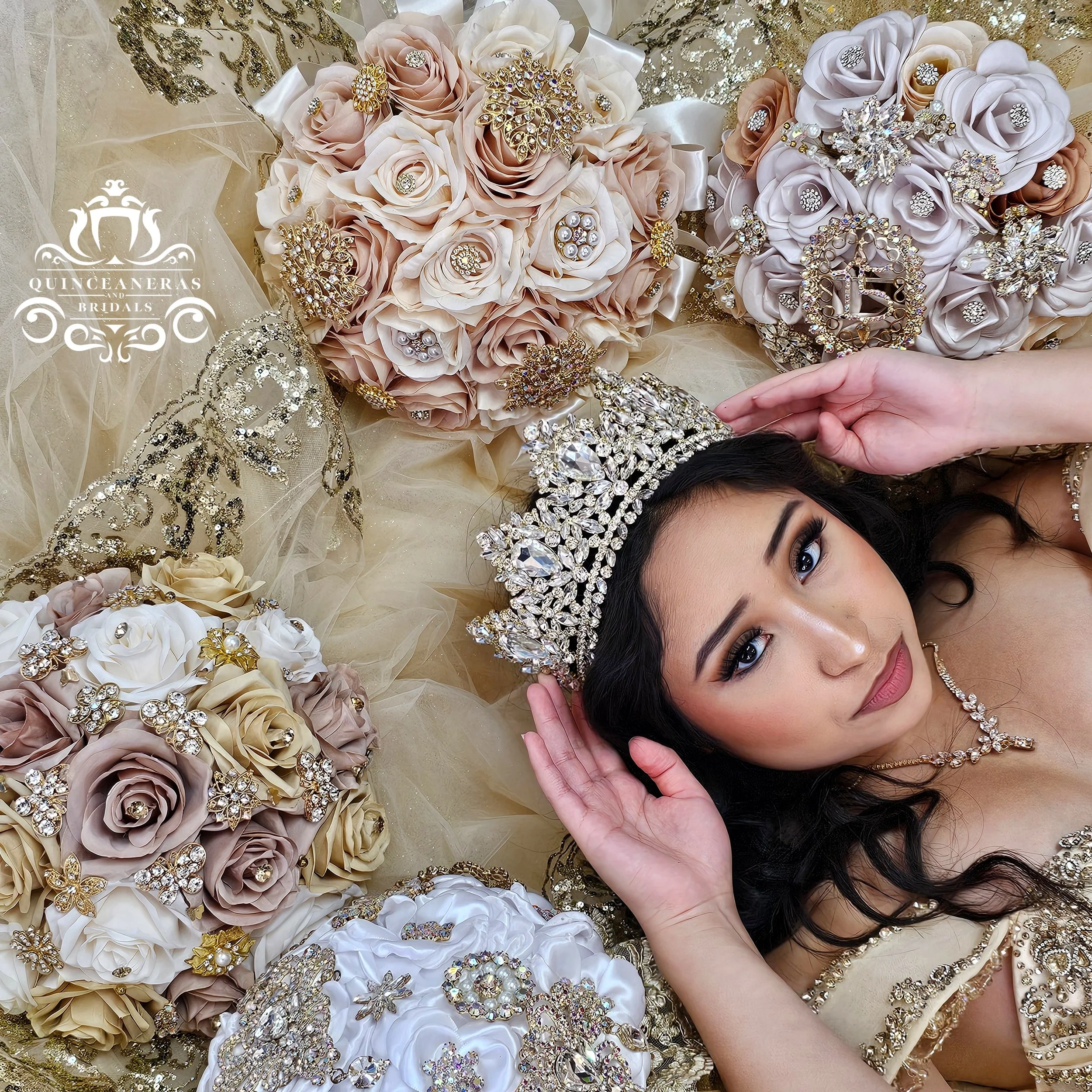 When the crown, necklace, and bouquet are chosen with care, they enhance the quinceañera’s natural beauty and create a cohesive, elegant look. Matching metals and stone finishes bring unity, while a thoughtfully chosen bouquet adds contrast and visual interest. The result is a stunning ensemble that shines in person and in every photograph, capturing the essence of this once-in-a-lifetime celebration.